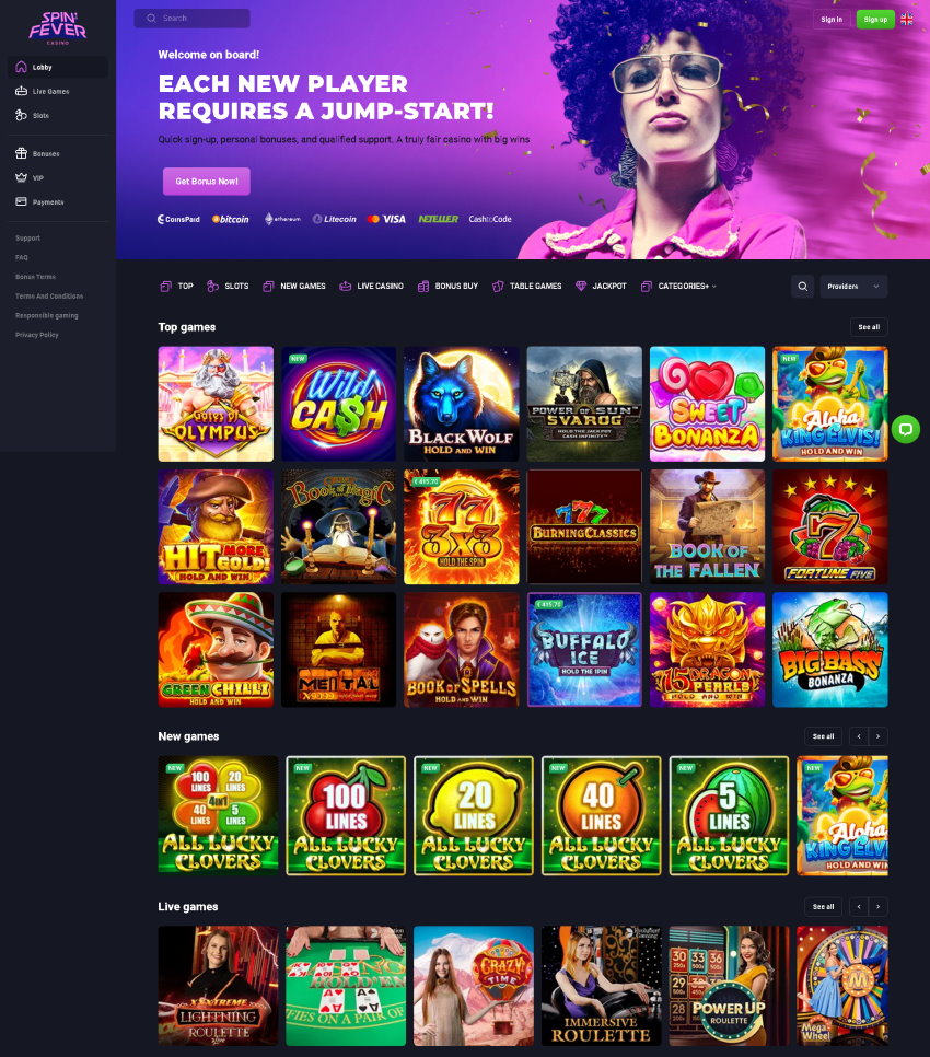 Spin Fever Casino features a wide array of games to choose from which are availed to players in their first-class quality by high industry software providers. It is very easy to navigate, and one can choose to play favorites, new games, casino games, jackpots as well as games that have been designed exclusively for the website.
